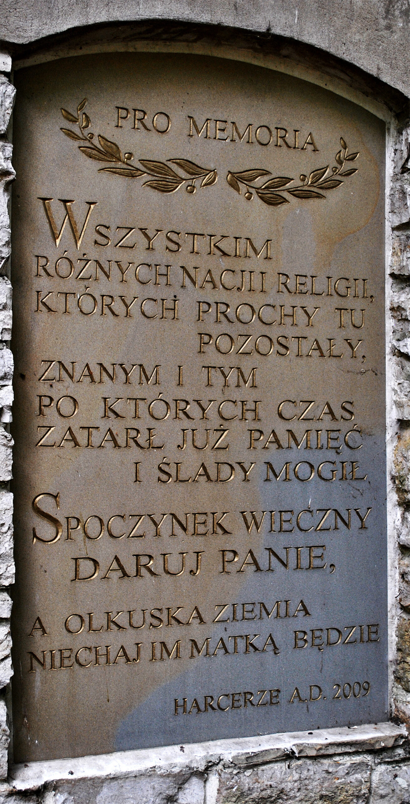Płyta pamiątkowa na starym cmentarzu w Olkuszu