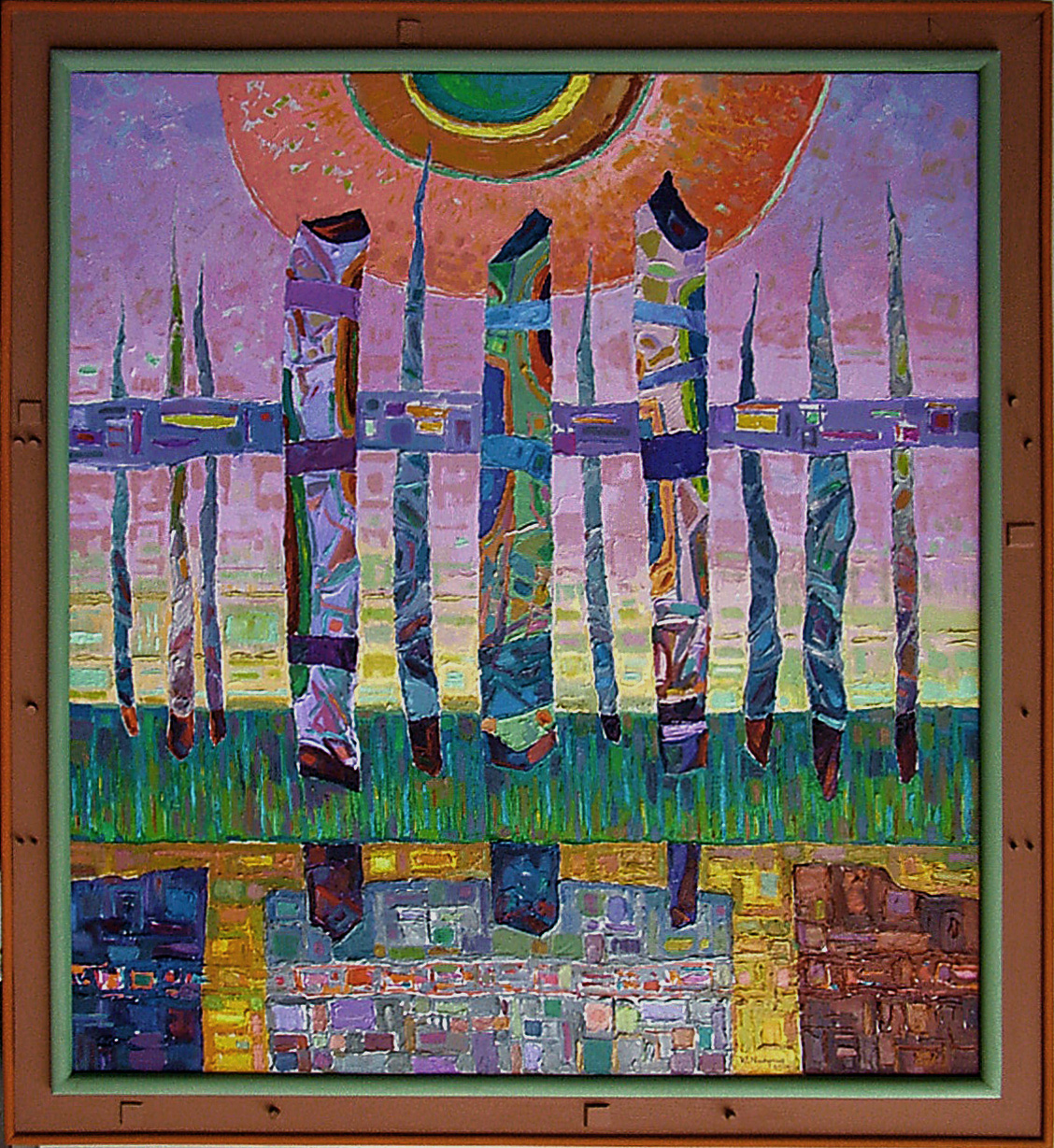Cienie zastygłe w milczeniu I, 110 x 130 cm, 2002 olej płótno wł. prywatna