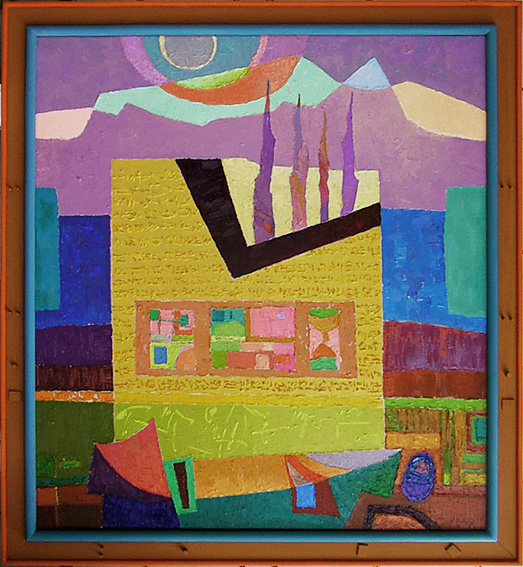 Cienie zastygłe w milczeniu Ib 100 x 110 cm 2002, olej płótno, Shadows frozen in solence wł. pryw
